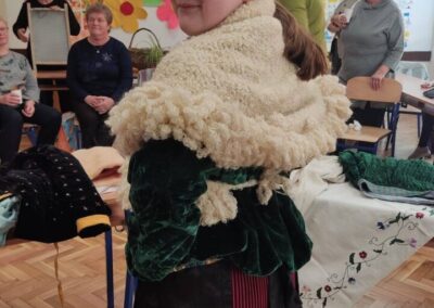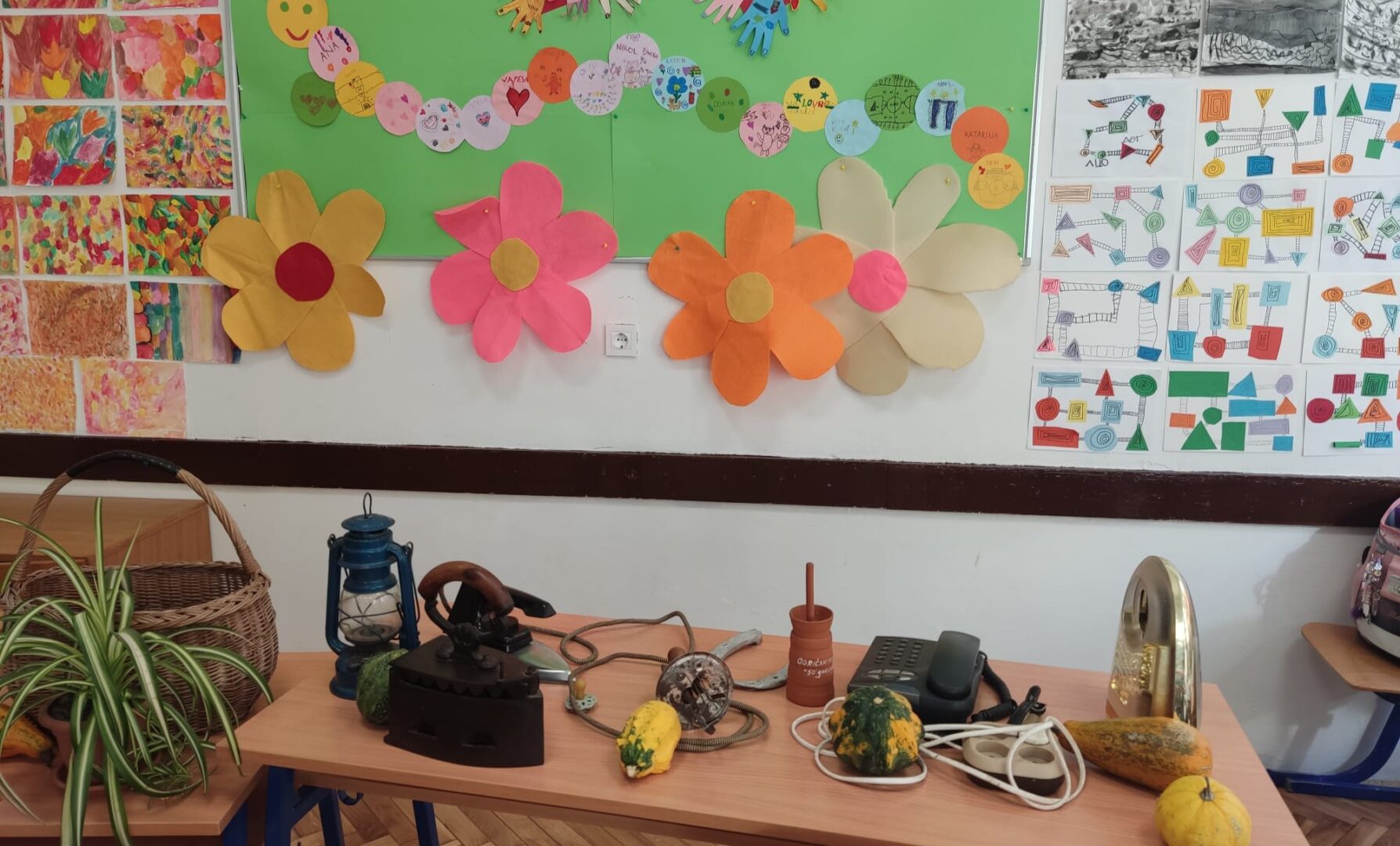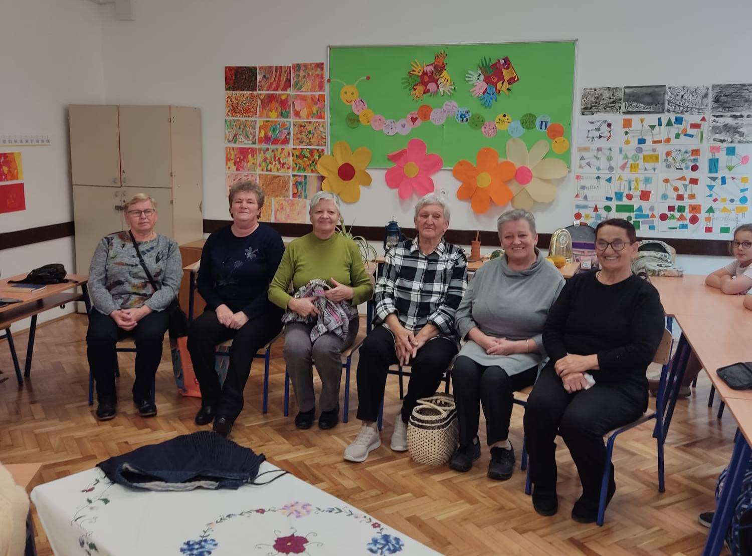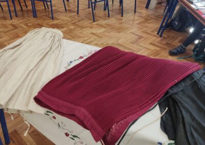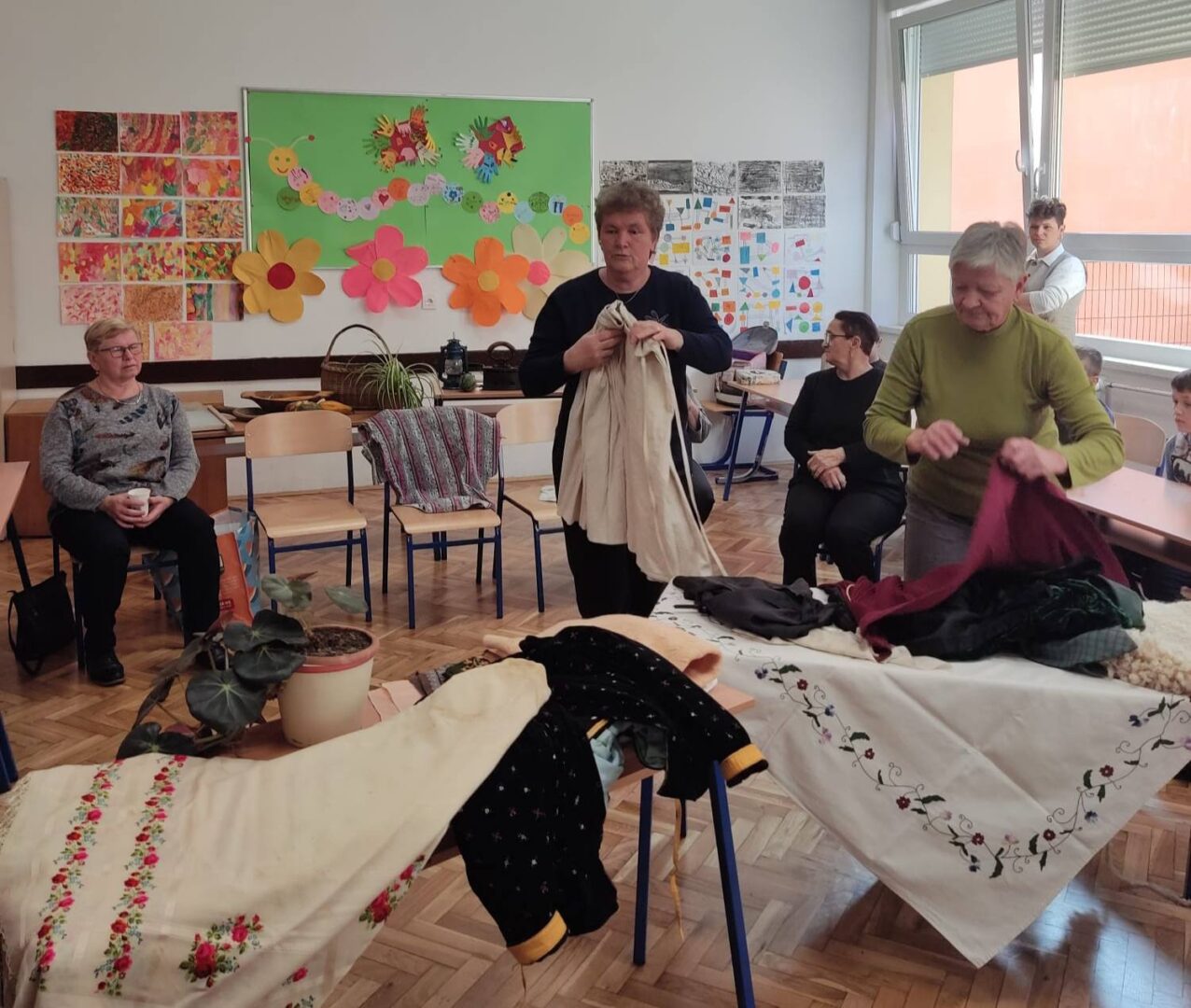 Donijele su sa sobom narodnu nošnju i pričale kako su nekada žene bile obučene za blagdane i radni dan. Obukle su djevojčice u nošnje i svi smo se vratili u neka davna, prekrasna vremena kada je život bio jednostavniji i smireniji. Pričale su nam o svome školovanju i školskim danima. Djeca su im postavljala zanimljiva pitanja na koje su one strpljivo odgovarale. Cijelim razredom širio se miris finih kolača koje su nam donijele i na kojima im zahvaljujemo.
