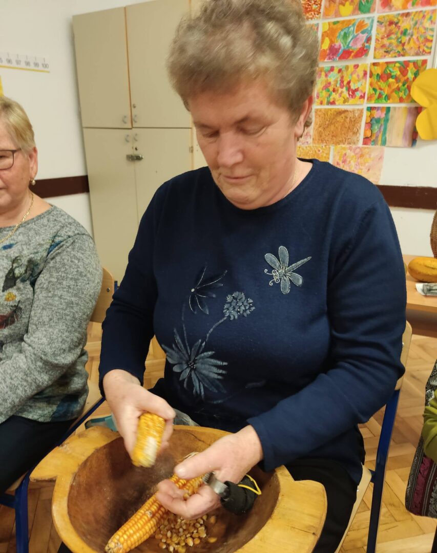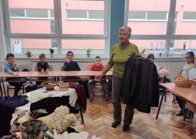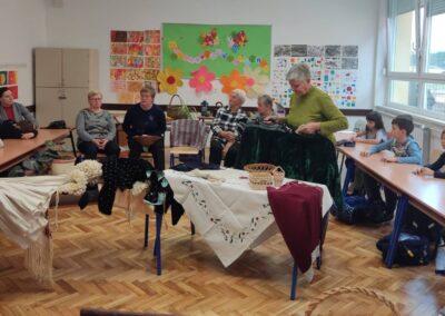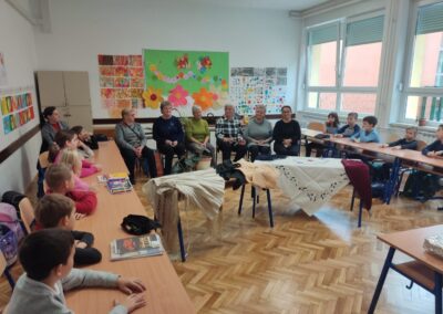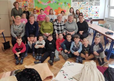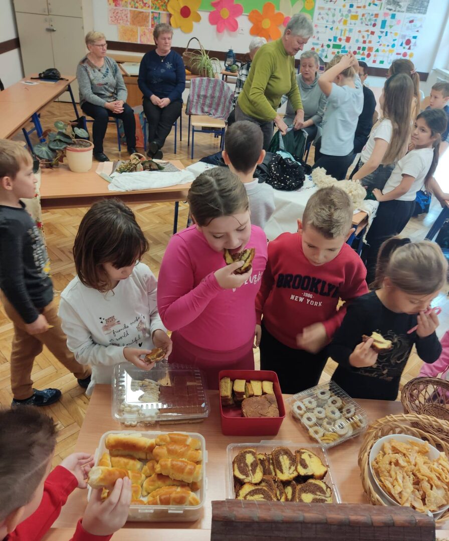 U petak,14. studenog 2025., učenici drugog razreda imali su zanimljiv i edukativan sat prirode i društva. U goste su pozvali bake koje su se vrlo rado odazvale pozivu da dođu u školu. Podijelile su s nama svoje bogato iskustvo vezano uz njihovo djetinjstvo i mladost. Pričale su nam kako su se slavili Uskrs i Božić, pokazale nam kako se krunio kukuruz, prao veš uz pomoć „riflje“, kako su od komušina izrađivale cekere, pokazivale nam kako se peglao veš uz pomoć nekadašnje pegle.