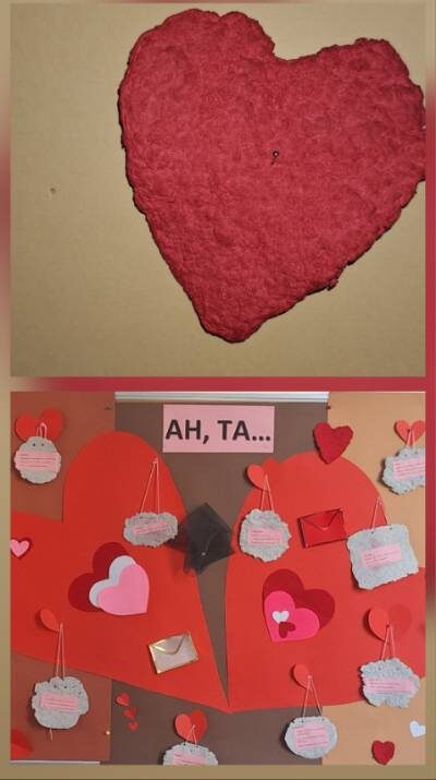 Zajedničkim su snagama izradile i prigodni pano koji krasi školski prostor. Pano je ispunjen recikliranim srcima, kreativnim porukama i pažljivo osmišljenim detaljima, te na poseban način obilježava Valentinovo u našoj školi.