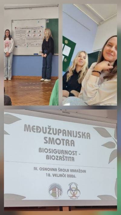 Međužupanijska smotra „Biosigurnost i biozaštita“ održana je 18. veljače 2026. godine u IV. osnovnoj školi Varaždin, gdje su se okupili brojni učenici iz različitih županija kako bi predstavili svoje istraživačke projekte iz područja biosigurnosti. Na smotri je sudjelovalo oko 30 timova iz osnovnih i srednjih škola, a cilj događanja bio je razvijati znanstvenu pismenost, istraživačke vještine te svijest o važnosti očuvanja zdravlja i odgovornog ponašanja.