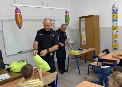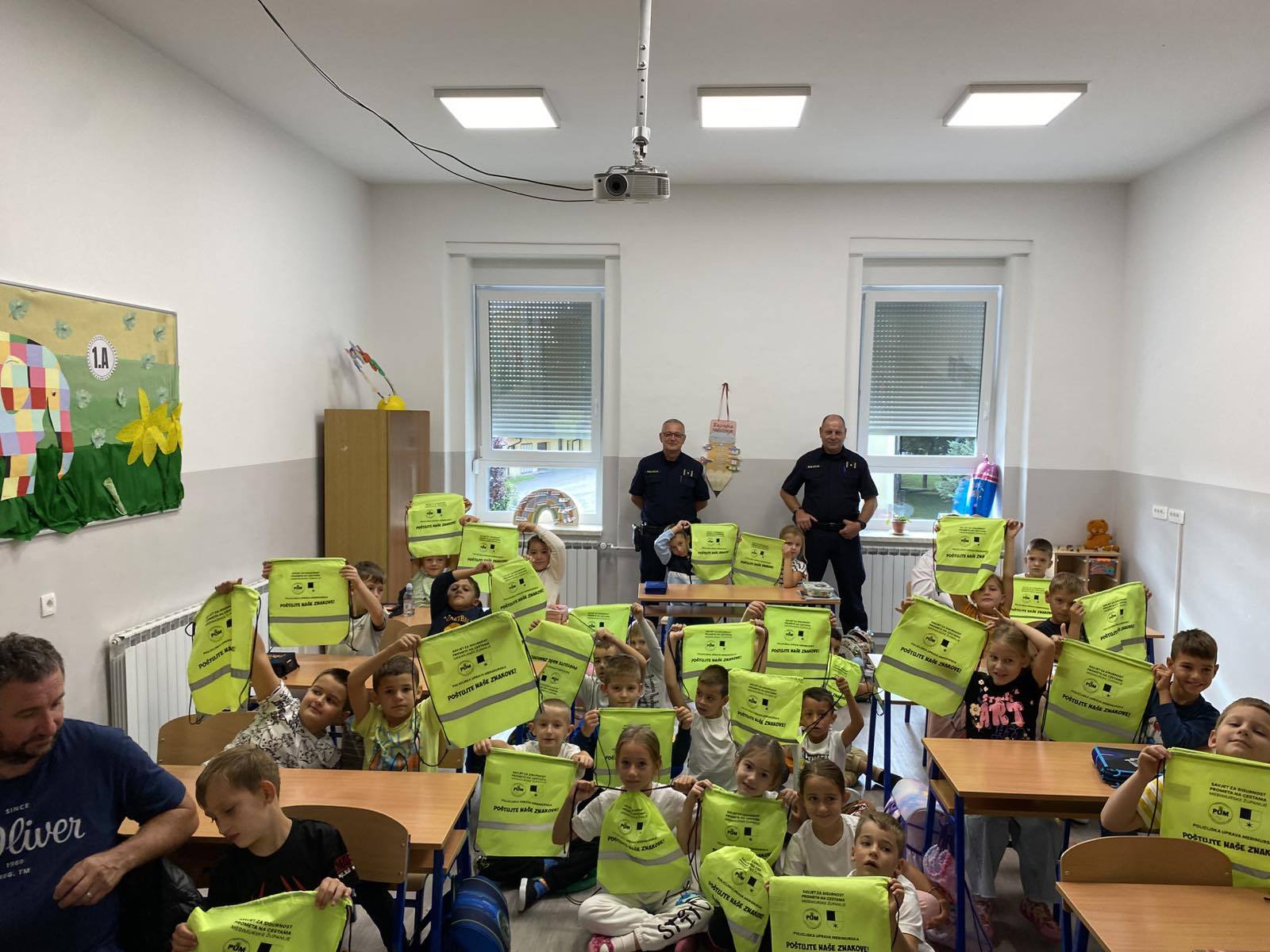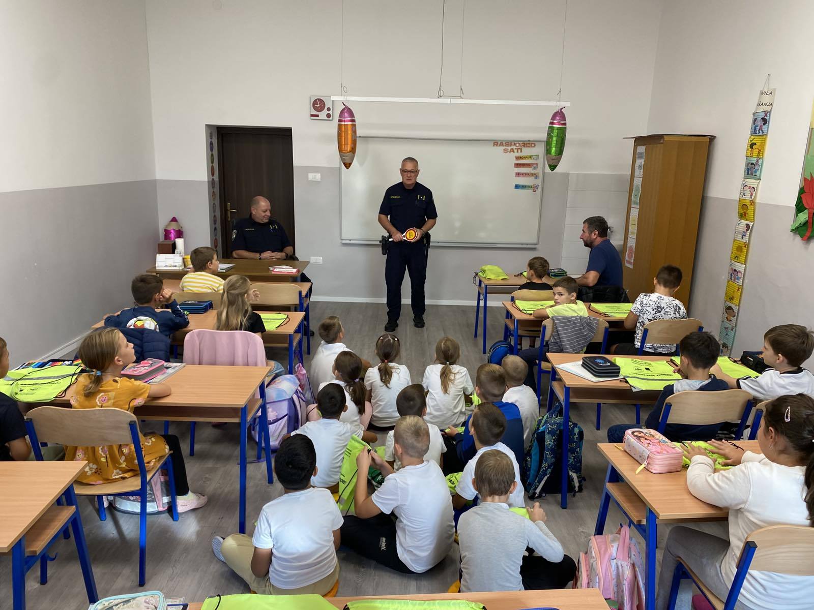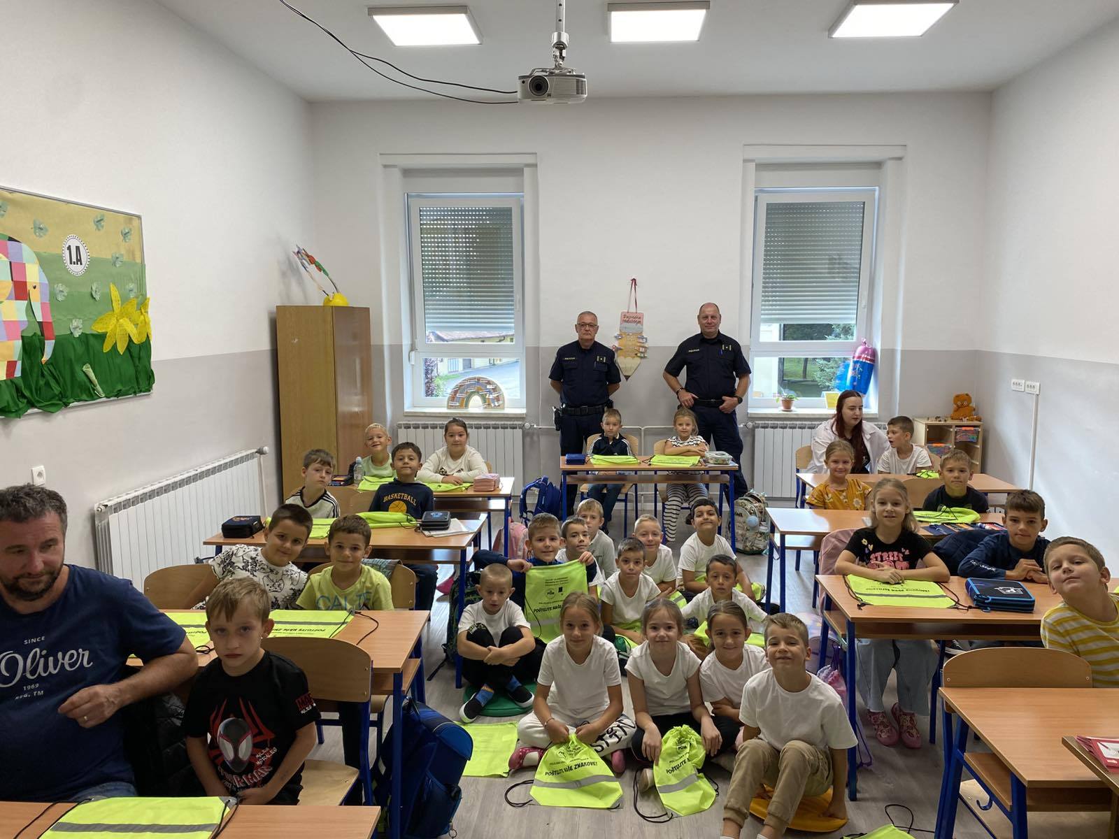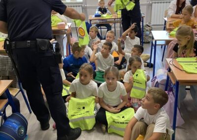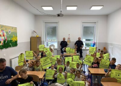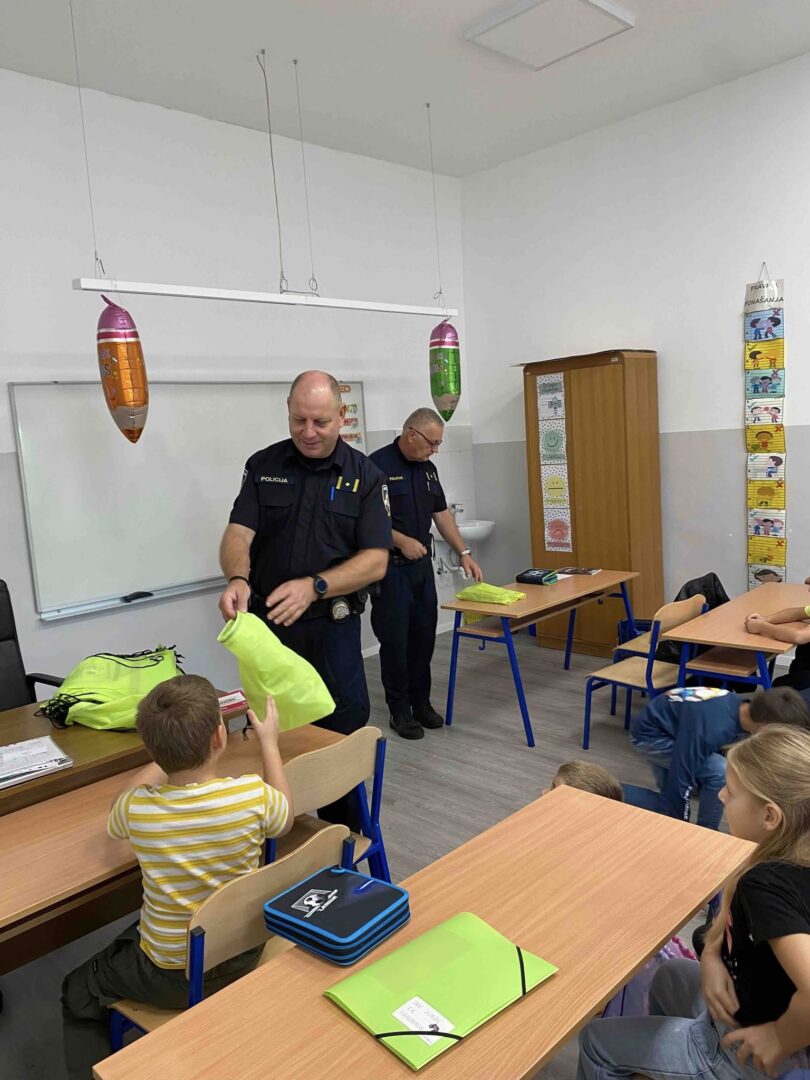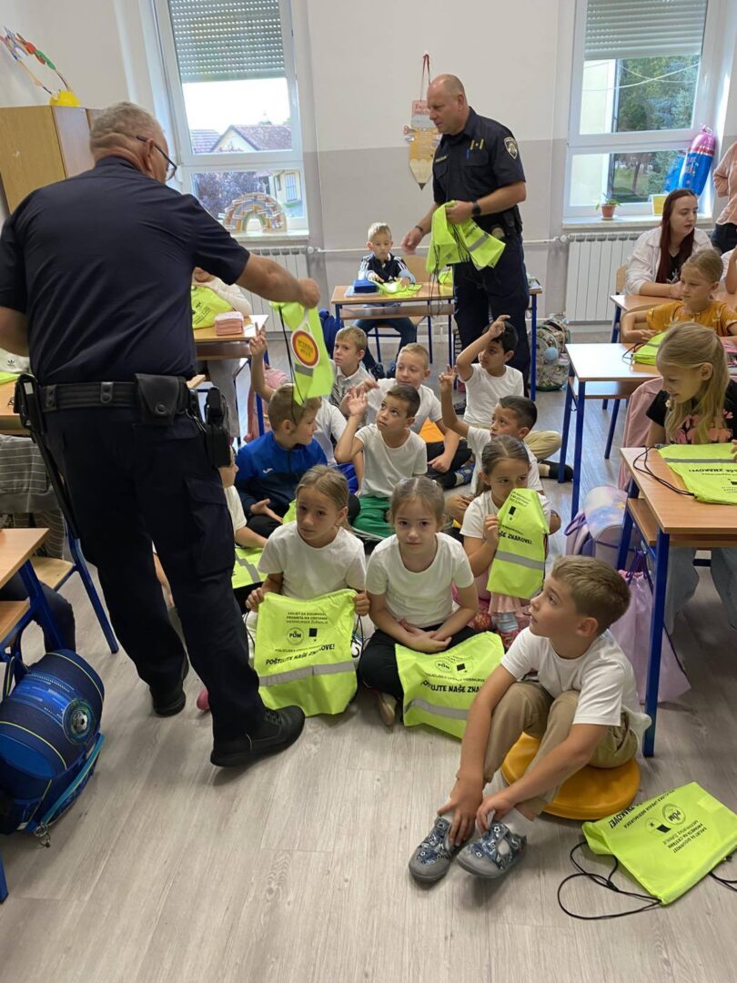 Učenicima su održali edukativno predavanje iz sigurnosti u cestovnom prometu. Djeca su saznala kako sigurno i pravilno upravljati biciklima i električnim romobilima te kako se pravilno kretati cestom. Učenici su na poklon dobili reflektirajuće vrećice za bolju i sigurniju vidljivost u prometu.