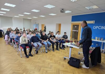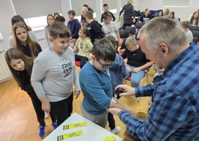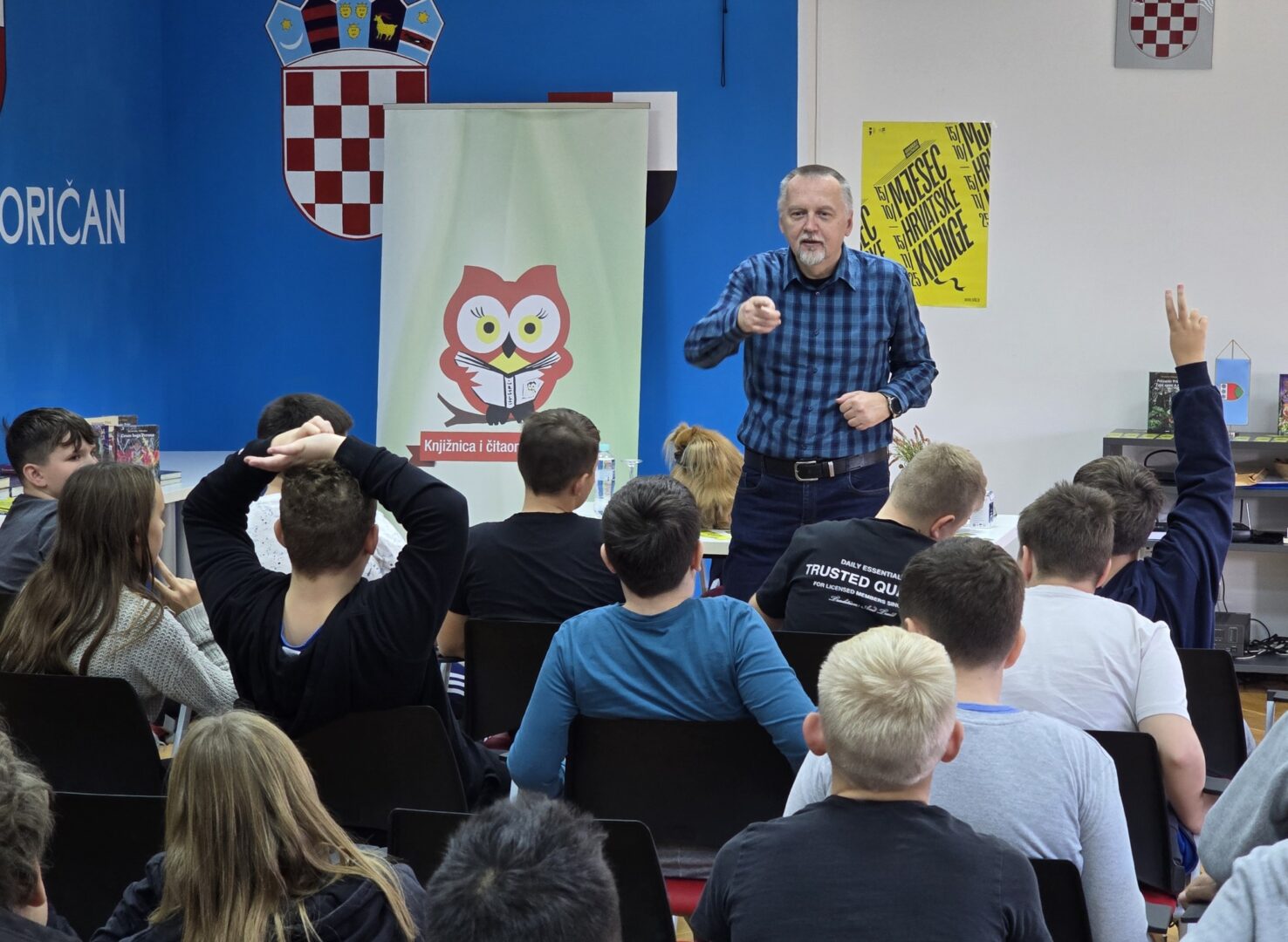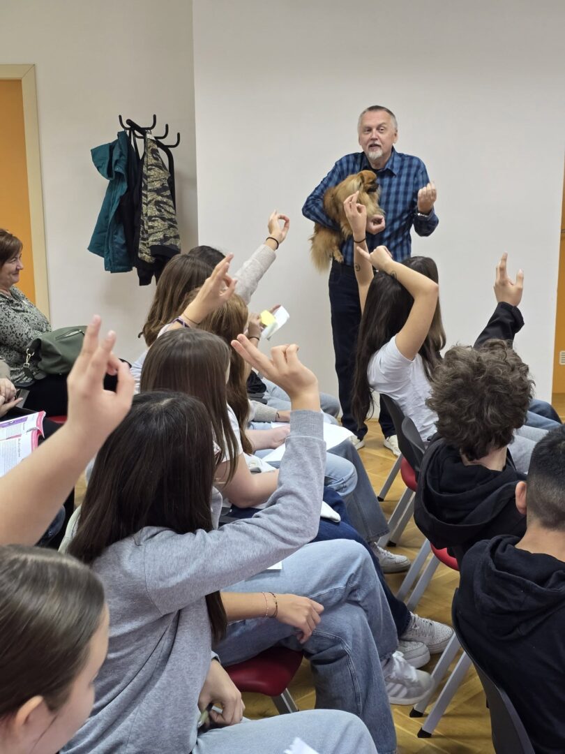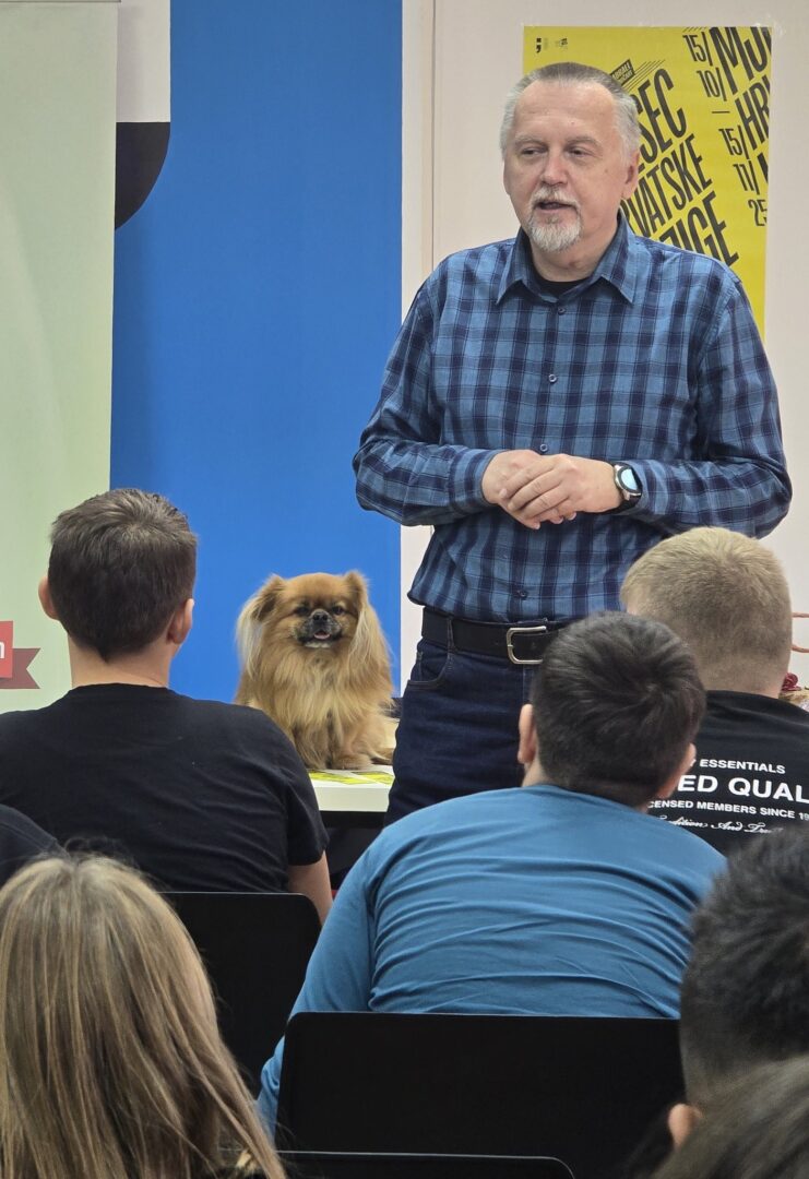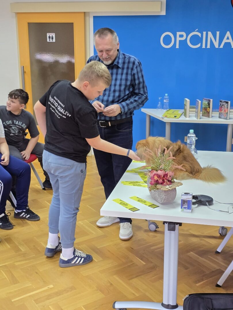Dana 27. listopada 2025. učenici 5. i 6. razreda te nekoliko učenica 7. i 8. razreda družili su se s književnikom Krunoslavom Mikulanom u multimedijalnoj dvorani Knjižnice i čitaonice Goričan. Krunoslav Mikulan bio je u društvu svoga psa pekinezera Princa koji je ujedno i glavni lik nekih njegovih romana. Pričao nam je o svojim romanima Pekinezer Princ u službi Njezina Veličanstva i Zmaj ispod Staroga grada na vrlo zanimljiv i pomalo tajanstven način.