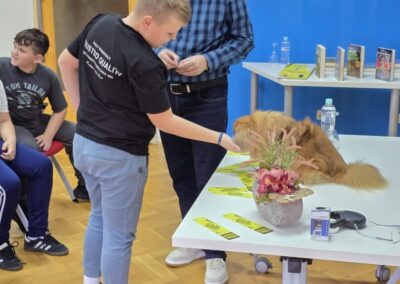 Nakon predstavljanja svojih romana, učenici su se družili s Princom, hranili su ga i mazili. Zatim su uslijedila pitanja. Učenike je zanimalo kako pisac pronalazi inspiraciju za pisanje, kakve teme i likove bira za svoje romane, kako izgleda proces stvaranja književnog djela… Pisac nam je otkrio kakve je knjige čitao u osnovnoj školi, kada je otkrio talent za pisanje i još mnogo zanimljivosti o sebi i Princu. Pitanja je bilo zaista jako puno, ali Krunoslav Mikulan odgovarao je spremno na sva pitanja, a Princ je mirno pratio svoga vlasnika.